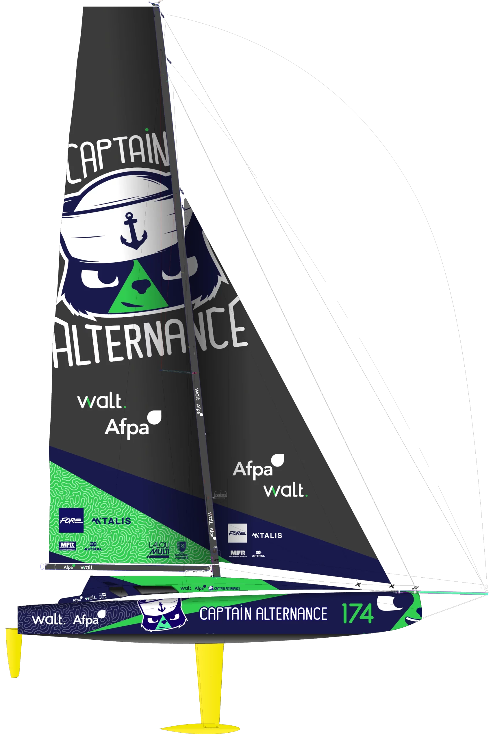 Walt se lance sur les mers avec son bateau ‘Captain Alternance’, une initiative combinant engagement environnemental et promotion de l’alternance. À travers le skipper Kéni Piperol et son Class 40, méticuleusement conçu par DAJM, ce projet vise à propager les valeurs de l’alternance sur les mers et au-delà.